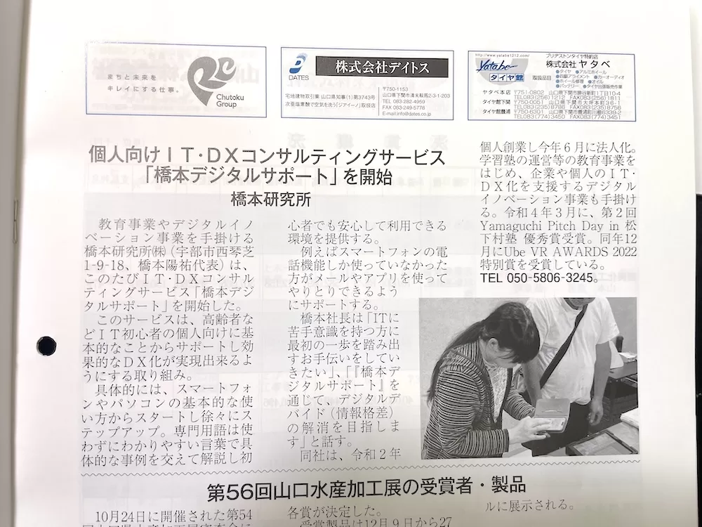 このたび、防長経済新報社様にて、橋本デジタルサポートをご紹介いただきました。